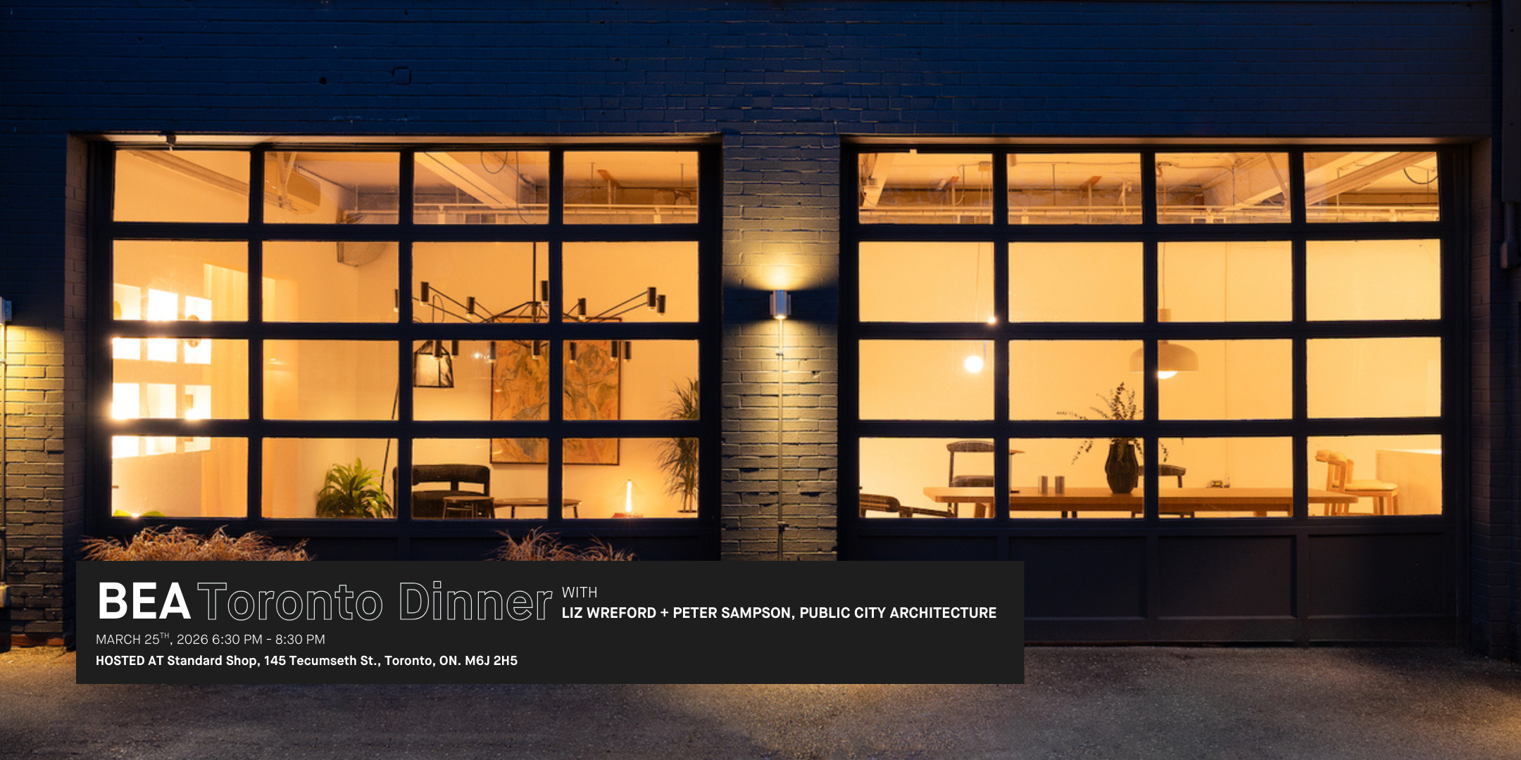 Join BEAToronto in a Kitchen Party-style dinner with co-founders Liz Wreford and Peter Sampson of Public City Architecture!
